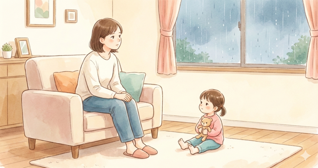 娘の大好きな公園には行けず、家の中で過ごす一日。